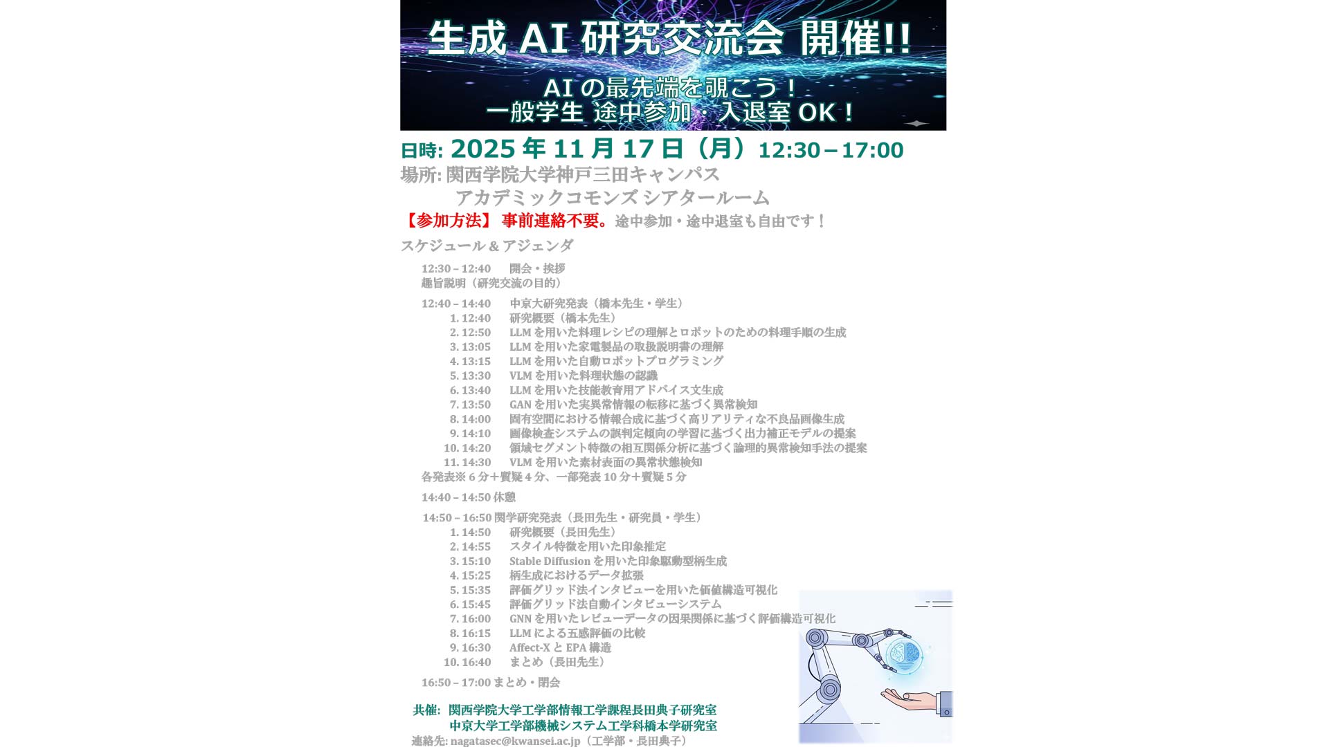 - 「生成AI研究交流会」@関学を開催しました(中京大橋本研との共催)