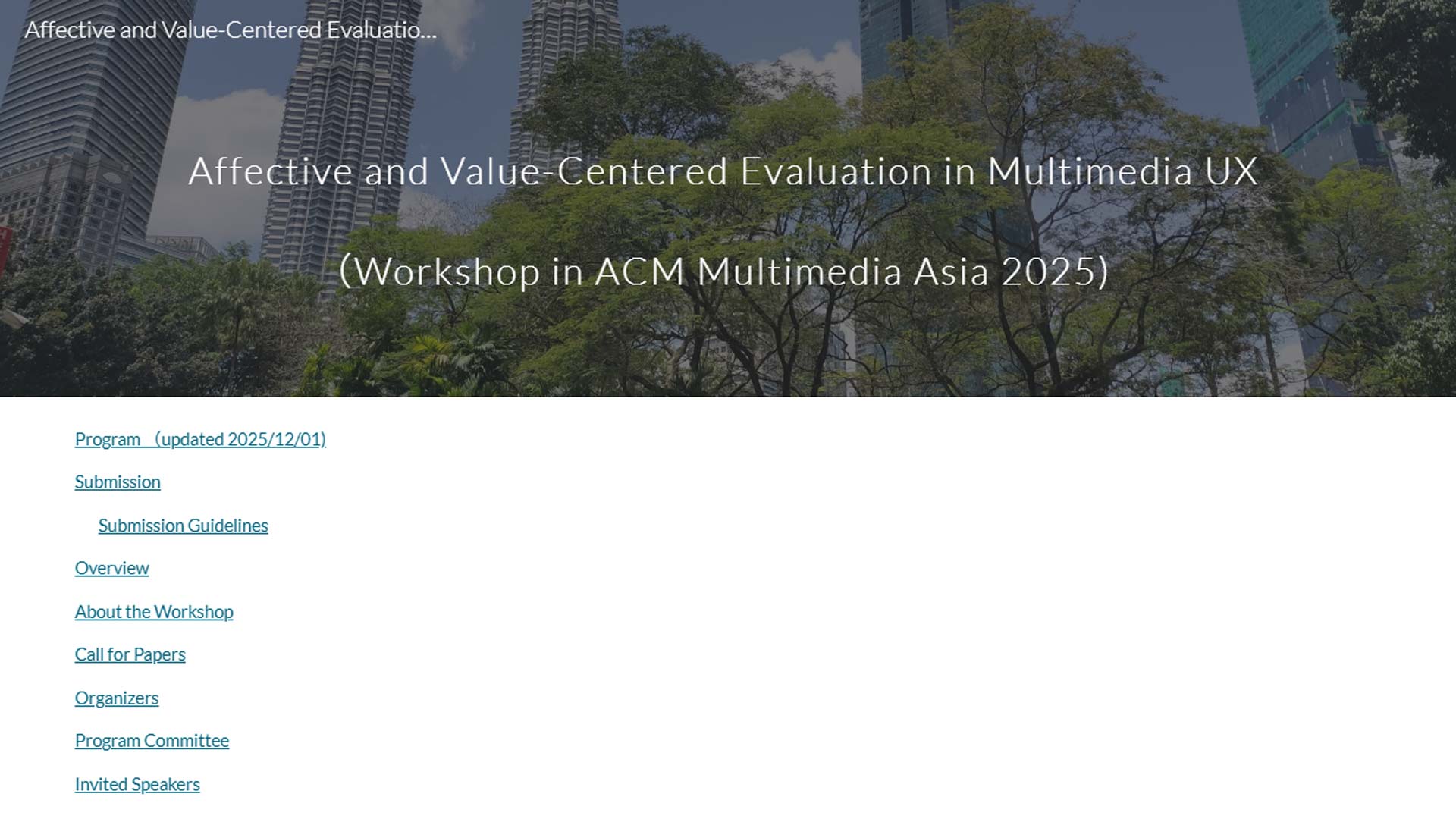 - ACMmmAsia2025@Malaysiaにて、ワークショップ「Affective and Value-Centered Evaluation in Multimedia UX」を開催しました